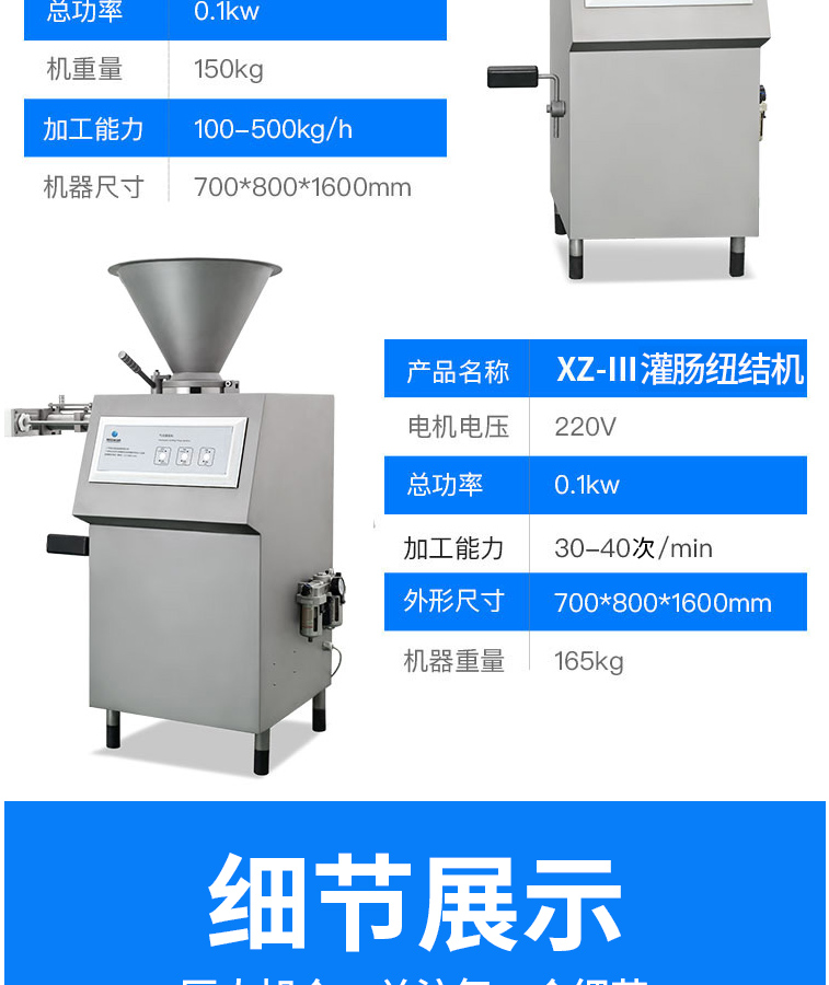 名稱自動(dòng)紐結(jié)灌腸機(jī) 電源220V 功率0.5kw 產(chǎn)量100-500kg/h 尺寸 重量 規(guī)格 其他